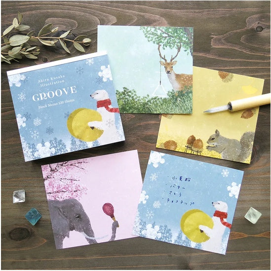 A beautiful square cube memo pad designed by Japanese illustrator Akira Kusaka. It comes with 4 designs, 30 sheets per design.