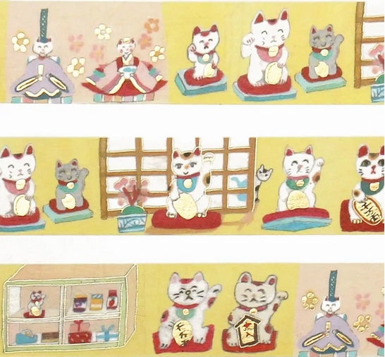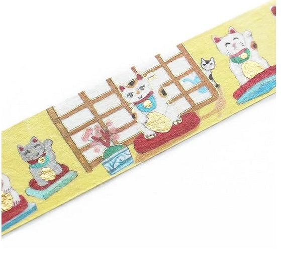 Ai Okino Gold Foil Stamped Masking Tape - Beckoning Cat
