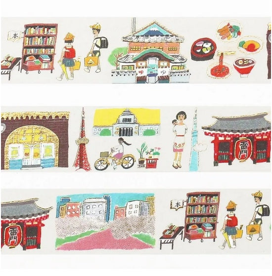 This charming masking tape is designed by illustrator Ai Okino (沖野 愛), who is known for her background in architectural design and her art based in the Kansai region.