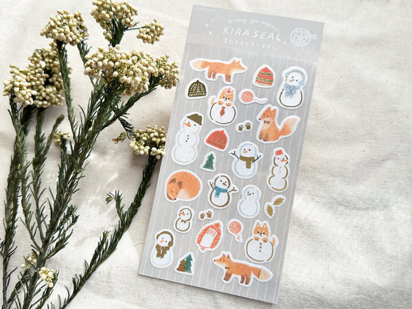 Furukawa Winter Foil Stamping Sheet of Stickers / Fox and Snowman