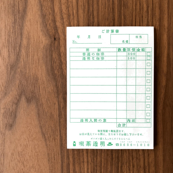 The actual check/bill forms used in this mysterious cafe are now available as a handy TO-DO List Memo Pad!