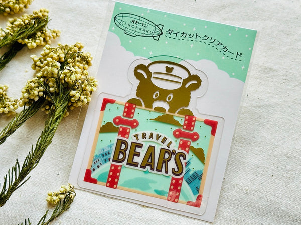 High-quality gold leaf and foil accents depict whimsical clouds, stars, and ob1toy’s iconic bears, creating a brilliant, "twinkling" effect against the clear material. The card is made from a transparent material and die-cut into a unique shape, giving it a modern yet retro feel. Its compact size makes it ideal for tucking behind a clear smartphone case, using as a decorative bookmark, or including in a scrapbook or journal layout.